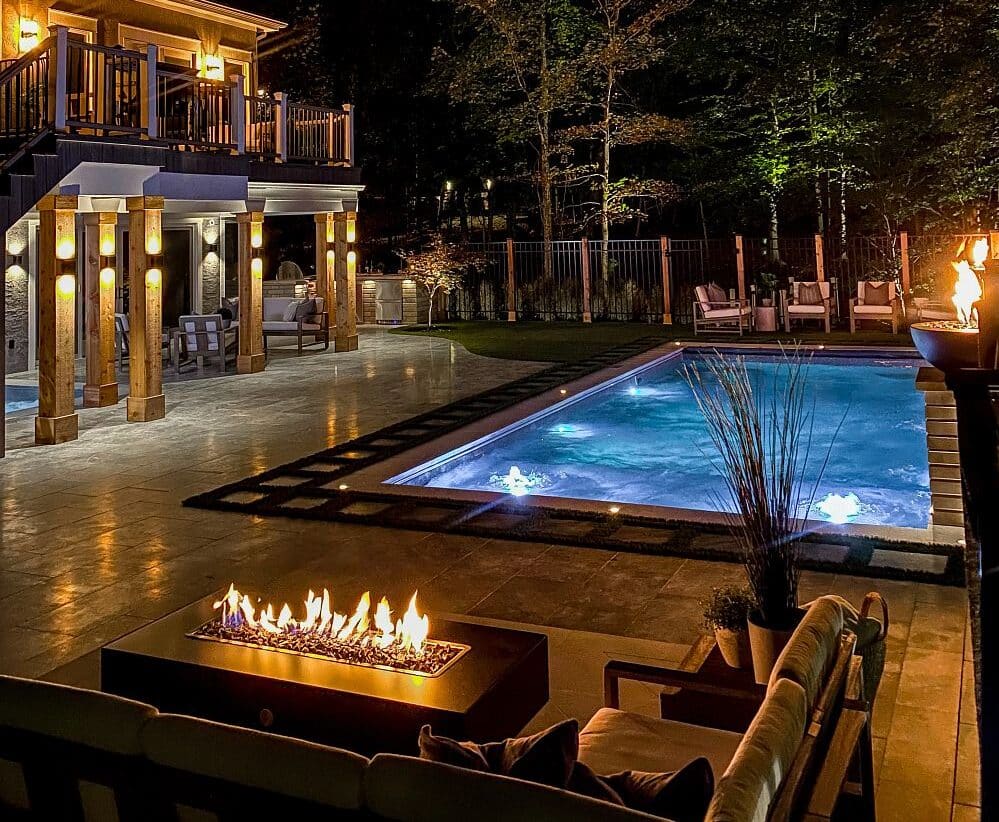 Designed to fit narrower backyards, the Astoria 14’s streamlined design is perfect for swimming and spacious enough for poolside (and spa-side!) gatherings.
