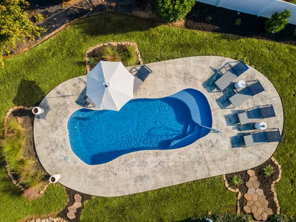 Fiberglass pools come in many different colors; this makes it easy to find one that pairs beautifully with your backyard and home. When it comes time to pick a color for your fiberglass pool, consider your current outdoor selections. Muted color palettes will benefit from either a vibrant or more sedate pool color combination. In contrast, a bright, eye-catching pool can easily hold its own in a more colorful backyard environment. With our wide variety of pool colors and finishes, we’re confident you’ll find one to perfectly complement your backyard color scheme.